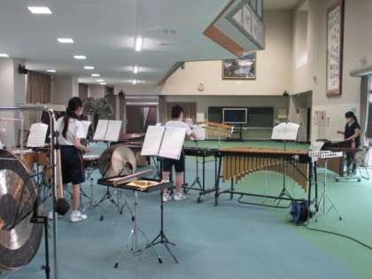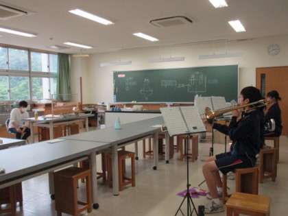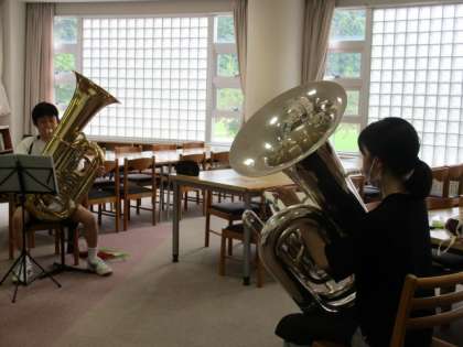 吹奏楽部の生徒が、講師の先生から専門的な技術指導を受けて頑張っています。