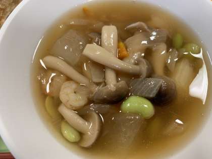 冬瓜は野菜とえびの出汁をたっぷり吸い込んでいて、とても美味しい。