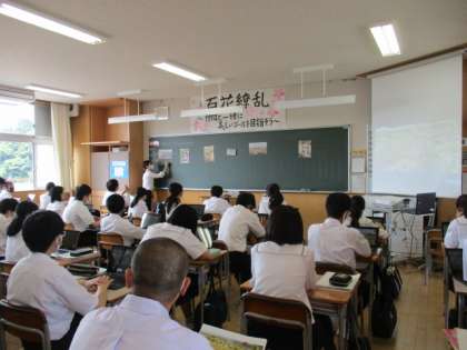 2年1組2限目は、教育実習生の先生による研究授業でした。教育実習の集大成として2週間前から準備をしての授業。練りに練った教材研究のもと、実習生の先生は堂々と授業をしていました。先生の熱意に生徒たちも真剣に応えていました。