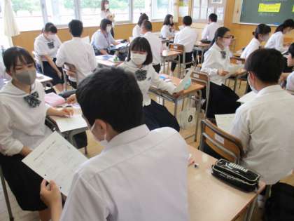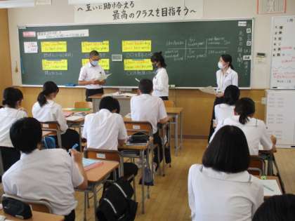 3年3組5限目は、実習生による英語の研究授業でした。「現在完了形を使って自分の○○歴について会話しよう」との課題のもと、ペアになって互いのことを紹介し合いました。ペアを変えながらたくさん会話をすることができ、一人一人が自信を深めることができた時間になりました。