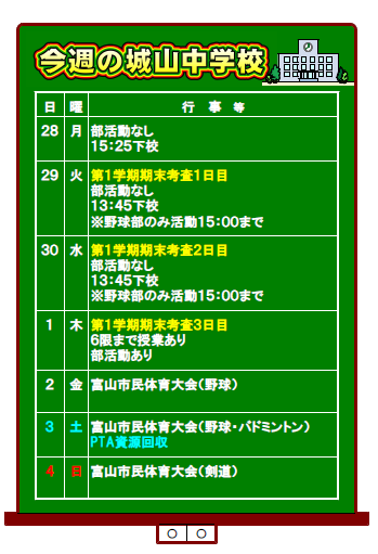 今週は第1学期期末考査が行われます。1学期の学習を丁寧に振り返る大切な機会にしましょう。