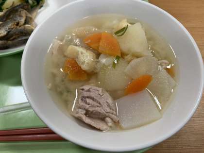 夏に食べる豚汁もいいですね。