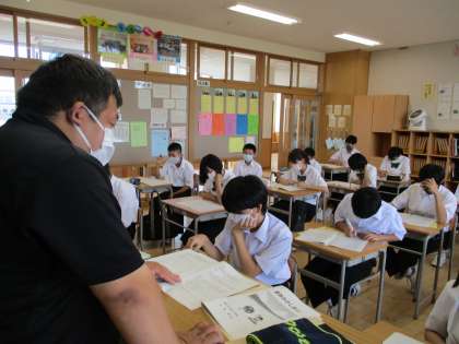 1年生にとっては、中学生になって初めての夏休み。夏休みについての話を聴き、目標や計画を立てました。