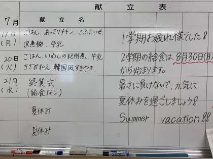 7月19日(月)給食室&給食委員会からのお知らせ