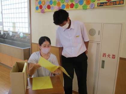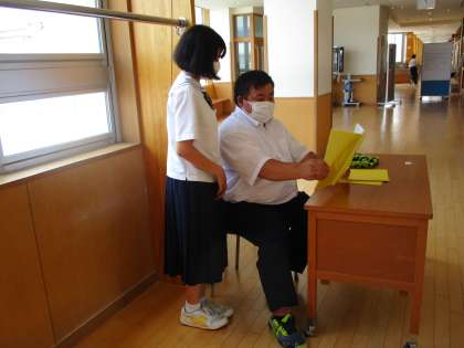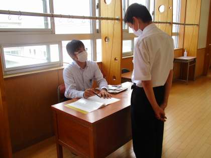 1学期の通知表を渡しています。1学期の生活や学習を振り返り、夏休み、そして2学期からに生かしましょう。