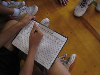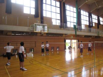 男子バドミントン部は、審判の練習にも取り組んでいます。バドミントン競技は、生徒審判制なのでしっかりやり方を覚えなくてはいけません。