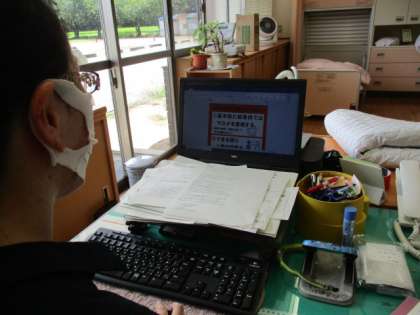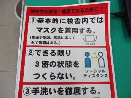 (写真上・中)養護の先生が、コロナウイルス感染症対策の新しい掲示物を作ってくださいました。