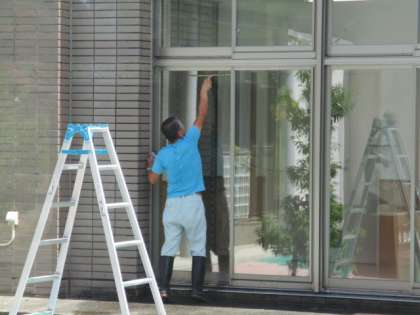 (写真下)中庭の窓ガラスを綺麗にしてくださっています。