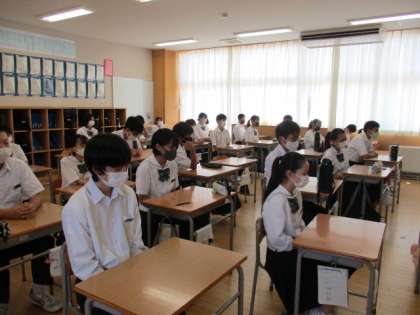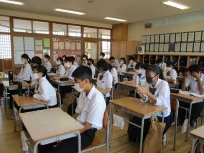 3学期最初は、夏の大会での結果発表を兼ねた受賞報告、各学年からの意見発表でした。今回は、放送での報告、発表でしたが、友達のがんばりに姿勢を正して聞いている姿が印象的でした。