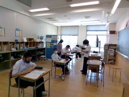 2学期の予定についてカレンダーを使って確認しています。見通しをもって学校生活に取り組めるといいですね。