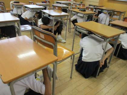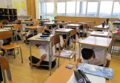 本日9月1日は防災の日。県内一斉に行われている「シェイクアウト訓練」を、本校でも行いました。子どもたちは放送を静かに聞き、訓練でも素早く静かに落ち着いて避難姿勢をとっていました。