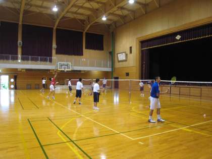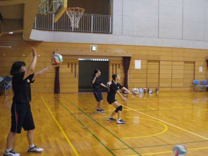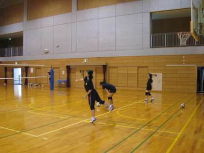 午後からは、女子バレーボール部、男子バドミントン部が活動していました。換気を徹底し、適度に水分を取りながら実施しています。