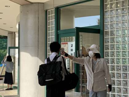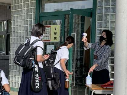 おはようございます。朝の様子です。 登校時の検温、手指消毒を続けています。