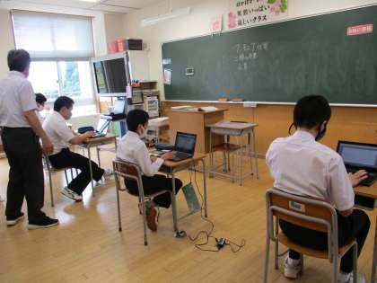 下:さくら級1組 理科で水素についてクロムブックを使って学習しています。