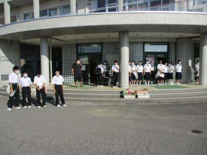 今朝も生徒会選挙の候補者が、玄関で選挙運動を行っていました。大声は出せませんが、さわやかな笑顔と心を込めた挨拶で、気持ちを伝えていました。