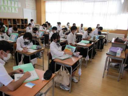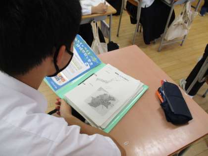 3年3組では、修学旅行で訪れる地域についての調べ活動を行い、意欲を高めています。