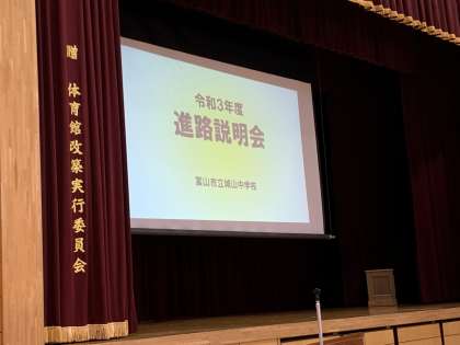 3年生と保護者を対象に進路説明会を開催したところ、たくさんの保護者の皆様に来校いただきました。