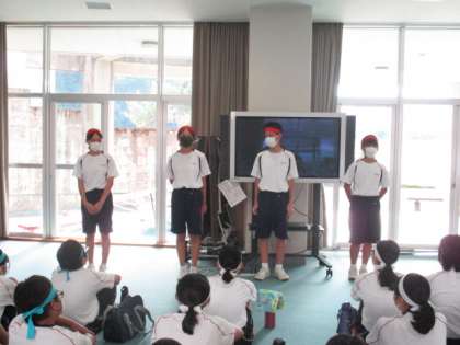 チーム城山1学年では、明日の体育大会本番に向けて、最終確認を行いました。各団の学年責任者と学年主任から一言、そして最後には、学年全員で校歌を熱く歌いました。