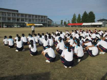 3年生はいよいよ明日が最後の体育大会となります。これまでのがんばりを振り返り、最高学年としてどんな背中を見せられるのか、学年主任の話を聞きながら一人一人がじっくりと考えています。きっと明日は立派な姿を見せてくれることでしょう。とても楽しみです。