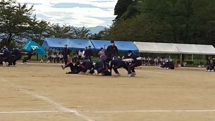 3年生の学年競技は棒引きです。準決勝から熱い戦いが繰り広げられています。