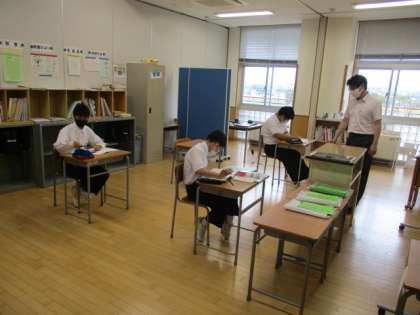 どちらのクラスも英語の学習を行っています。文章を読んだり、単語を確認したりと、真剣に取り組んでいます。