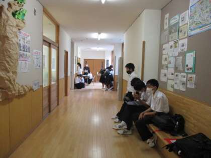本日の総合的な学習の時間では、11月1日に延期になった校外学習の事前学習を行いました。訪問する予定の場所に班の代表者が電話をしました。緊張した面持ちで敬語を使いながら電話を掛けていました。また、放課後は、全校放送を使って行われる生徒総会のリハーサルをしました。準備に準備を重ね、昨日の学級討議で出た意見を生かそうとがんばっていました。リハーサル後も最後の仕上げを自習コーナーで行っていました。