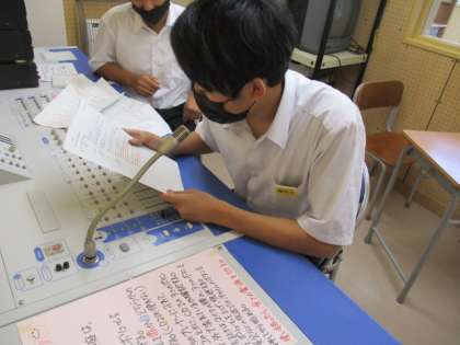 後期生徒総会が始まりました。放送とオンラインのハイブリッドで行っています。