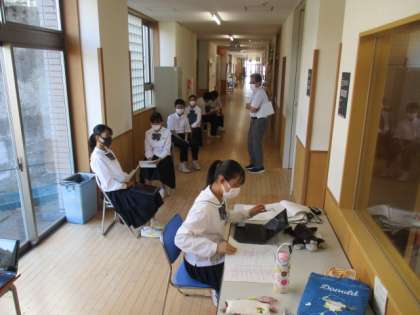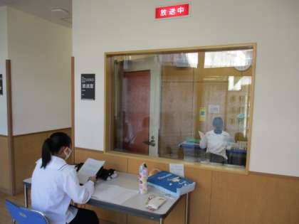 次に話す生徒会役員が自分の番を待っています。放送室前も、緊張感があふれています。
