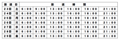 ※編制の都合により、放送回数を縮小する場合がございます。(中継など)
