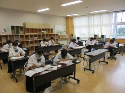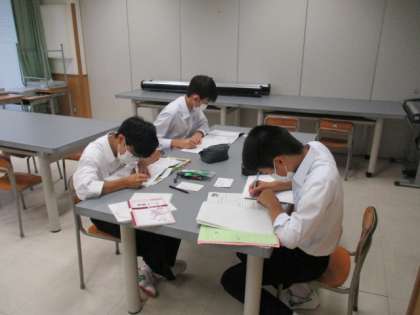 中間考査がいよいよせまってきました。今日も朝Sルームは静かに賑わっています。プリントを活用したり、ワークに黙々と取り組んだりと、静がで真剣な学びの雰囲気が広がっています。