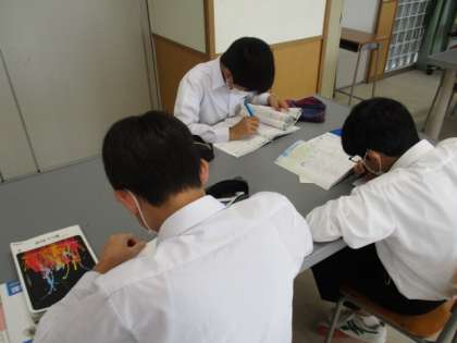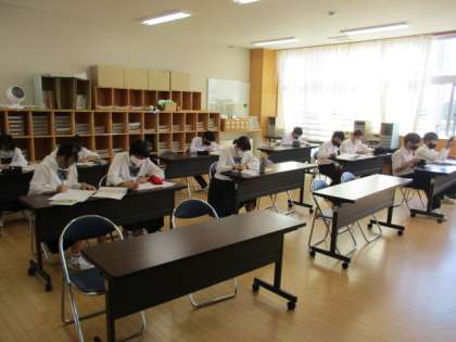 いよいよ今日から中間考査。今日も朝Sルームは静かに真剣な空気が流れています。この部屋にたくさん用意してあるプリントを活用するなど、復習に余念がありません。