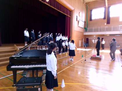 クラス合唱の並びを確認しています。