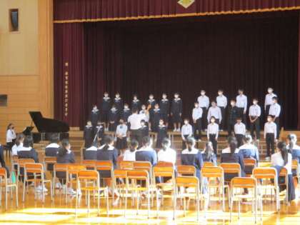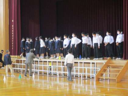 合唱コンクールが終末に迫る中、リハーサルが行われました。スムーズに進むようにと、動きや立ち位置を確認しています。