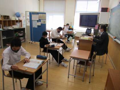 理科で「光とレンズ」の学習をしています。映像も活用しながら光の動きをイメージしながら学んでいます。