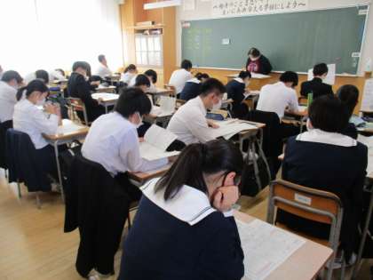 中間考査の振り返りをしています。大事なところをしっかりと確認しています。