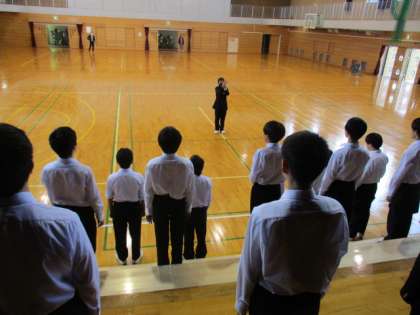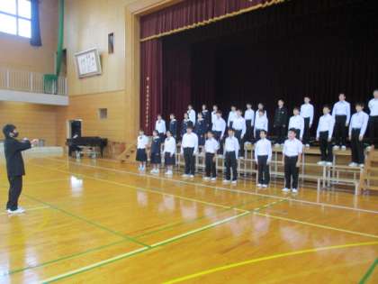1年2組は体育館の広さを感じながら、遠くまで届くよう力強く歌うことを意識して練習しています。
