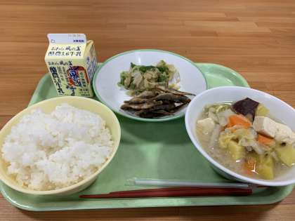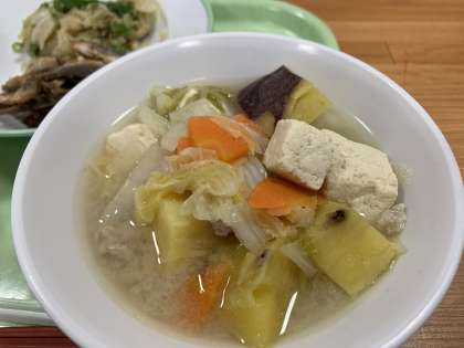 根菜いっぱいのさつま汁。しょうがの隠し味が決め手です。
