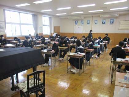 合唱コンクールの興奮冷めやらぬうちに歌のテストです。待っている間も楽譜を確認する姿もあります。