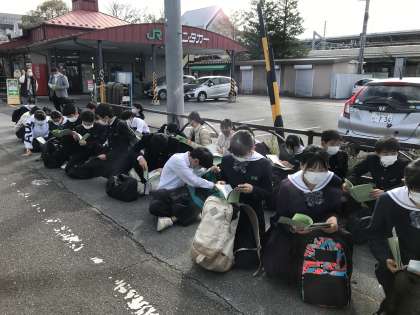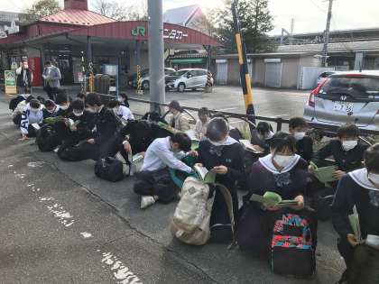 軽井沢駅に到着しました。今から、班別学習に入ります。しおりで、日程や集合場所等の最終確認行いました。安全に気をつけて行ってきます。