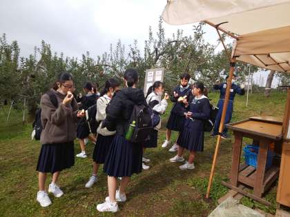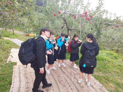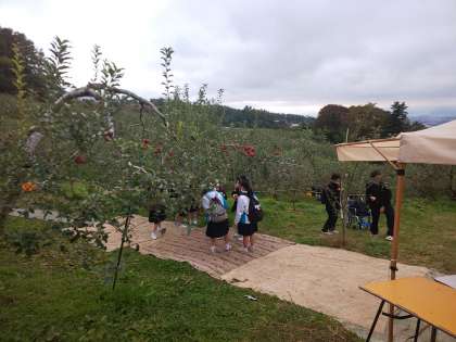 清々しい空気の中、朝食後でも、たくさんりんごを食べられちゃいます。