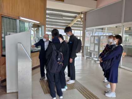買い慣れない乗車券を駅員さんに教えてもらいながら購入しています。