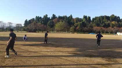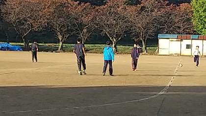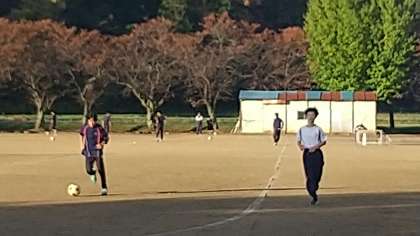 いえいえ陸上部の朝練です。準備運動にサッカーを取り入れています。楽しそうに体を動かしています。