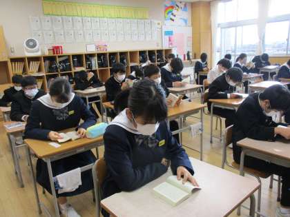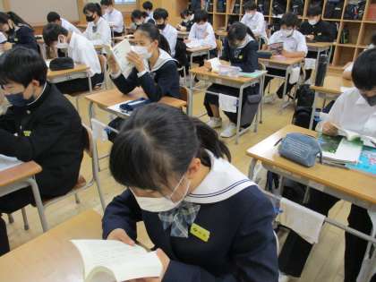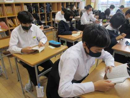 1学年の今日の城中タイムは、読書でした。どのクラスも静かに本を読む姿がありました。