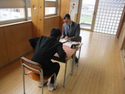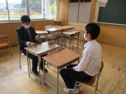 スピーキングテストに挑戦中。英語で堂々と話をしています。