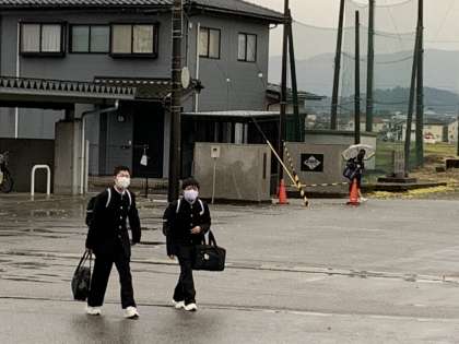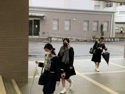 気温も下がり、雨も冷たくなってきました。こんな日は長靴やブーツを履いてきましょう。また、手袋も必要ですね。手を真っ赤にしてくる生徒をよく見かけます。自転車通学生はゴム手袋はどうでしょうか。