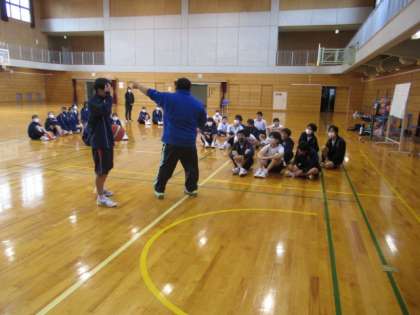 ペアで2つに分かれて、オフェンスとデフェンスの攻撃の練習をしています。