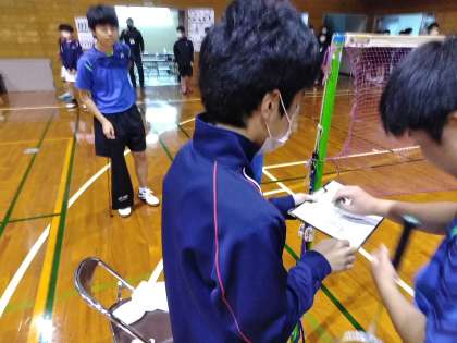 バドミントン競技では、審判も生徒が行なわなくては行けません。今までの準備の成果を発揮しています。