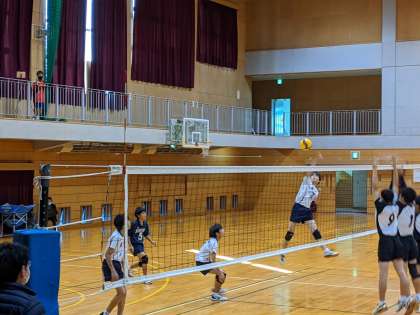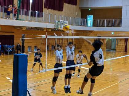 本日、富山市新人大会バレーボール競技男子の部が城山中学校で行われました。藤ノ木中、堀川中、山田中と対戦し、相手チームのかけ声やプレーなどから自分たちに足りないことをいろいろ発見していました。前向きな姿勢をもって、これからの部活動にも励んでいきます。