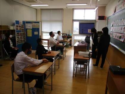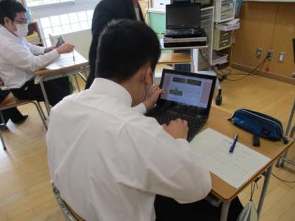 「行きたい国を伝えよう」という課題で学習しています。単語の確認をしたうえで、クロムブックも活用しながら、相手に伝える文をつくっています。