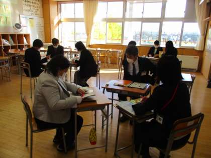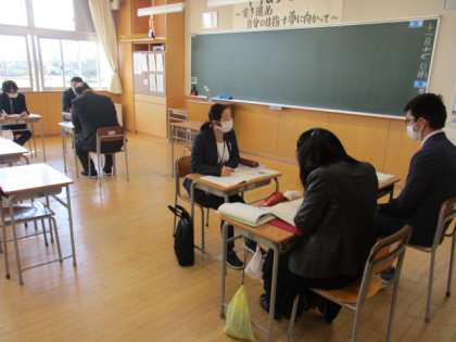 今日の授業について振り返り、参観していただいた先生方から、助言をいただいています。明日からの授業に生かそうと、先生方も真剣に話を聞いています。